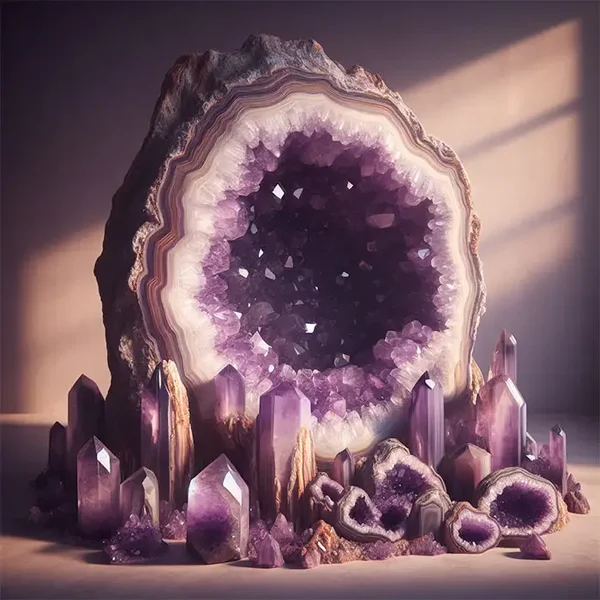 Importance historique: Connue comme la « pierre de la sobriété », l’améthyste était considérée par les Grecs anciens comme un remède contre l’ivresse. Elle était aussi prisée pour les insignes royaux au Moyen Âge.